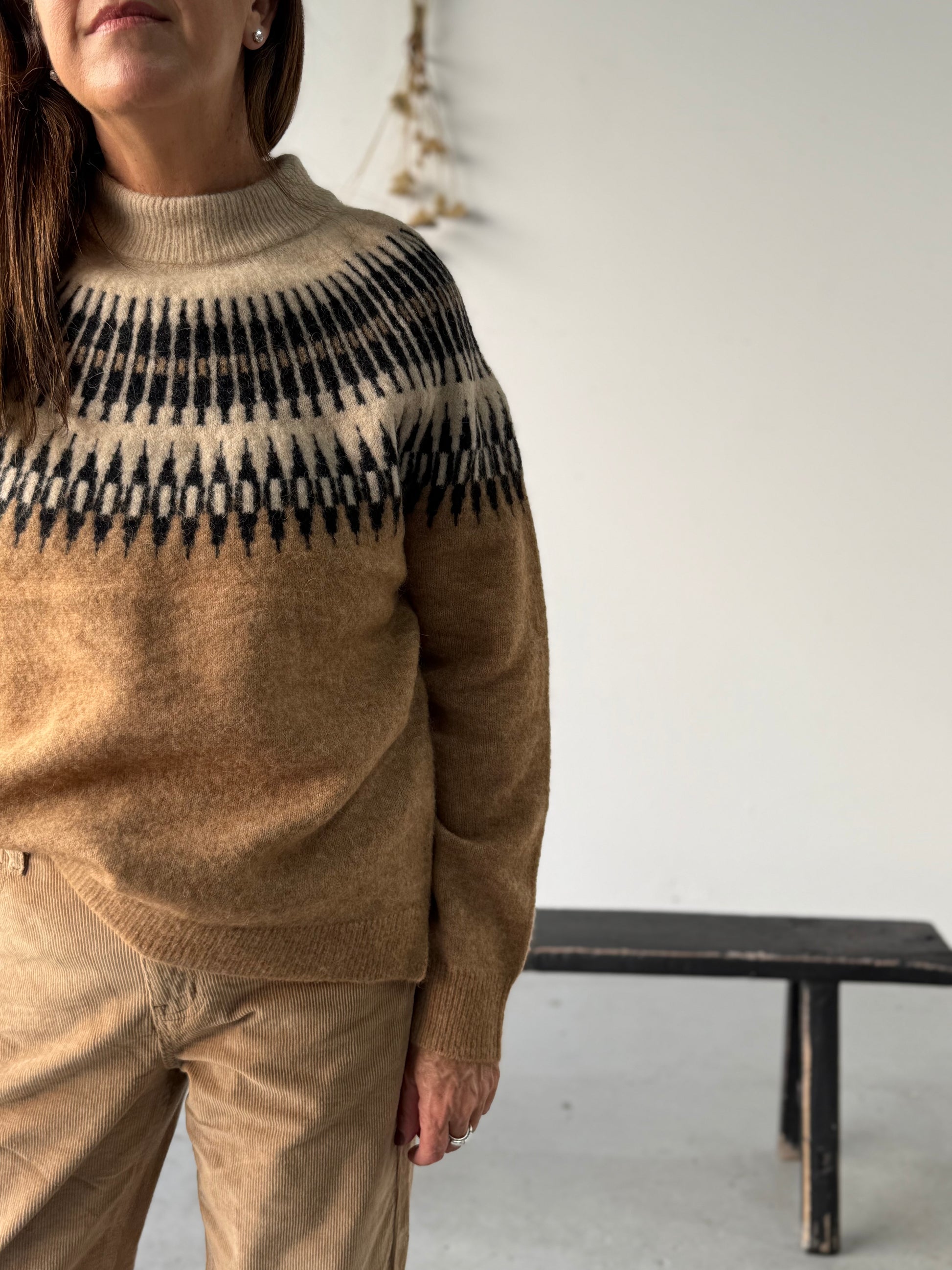 The KERFO CAMEL sweater is a must-have for cooler seasons. Its warm camel hue adds a touch of sophistication to your wardrobe, while also being easy to pair with other colors.