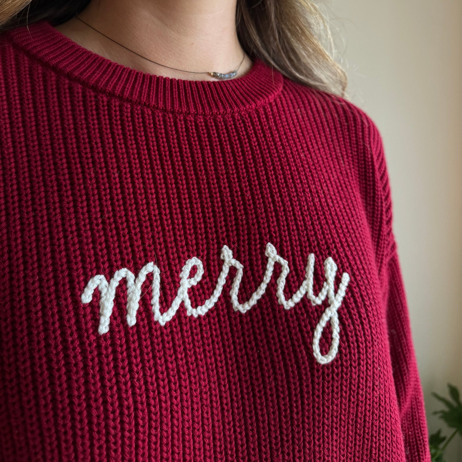 Get into a fashionable festive mood with our 'Merry' sweater.